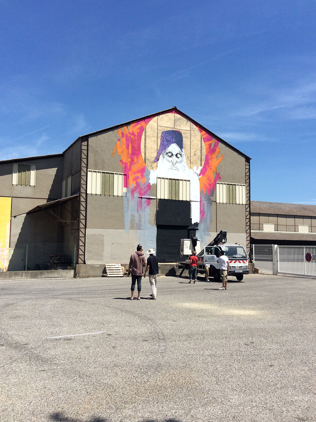 Bombe aérosol sur mur, environ 800 x 600 cm.